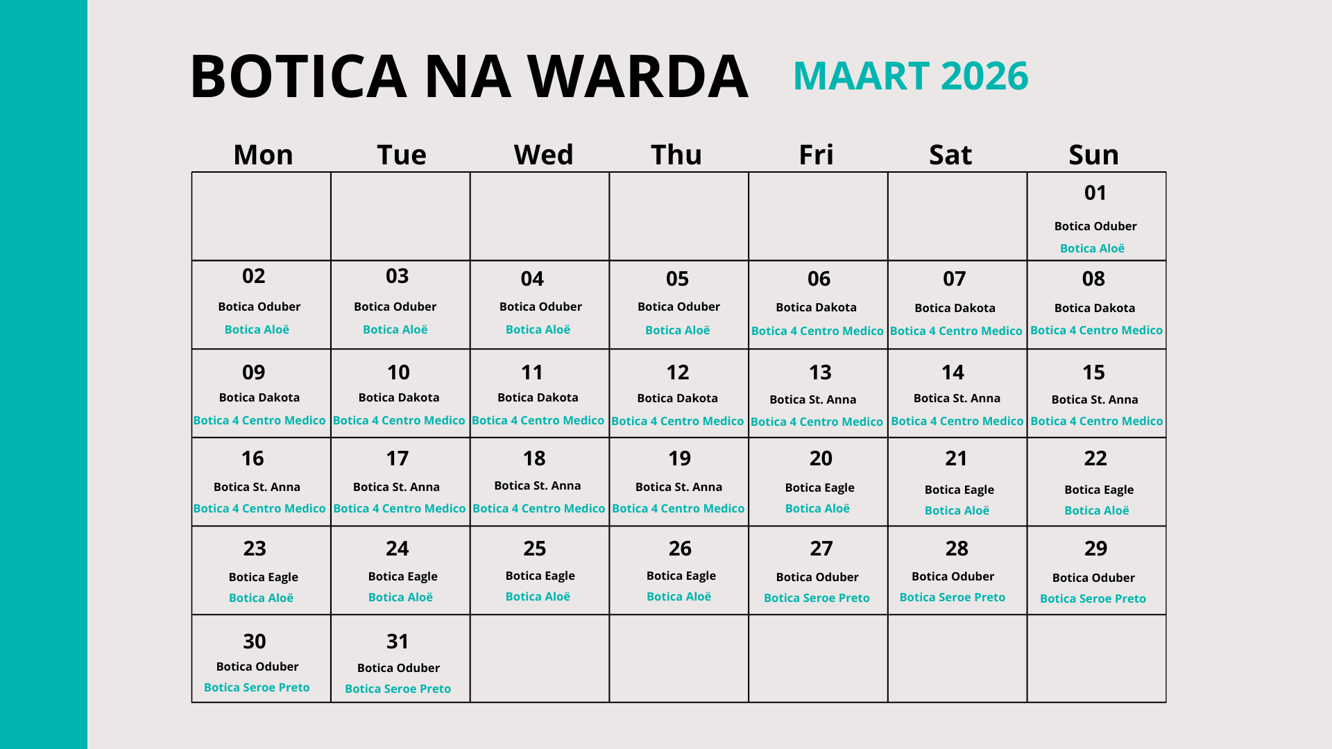Maart 2026Botica na wardaDate: 1 January 2026 08:00 till 28 February 2026 20:00Location: ARUBA DOWNLOAD Share onShare this page on LinkedInShare this page on XShare this page on FacebookShare this page on WhatsAppShare the page 'Maart 2026' via emailPrint this page
