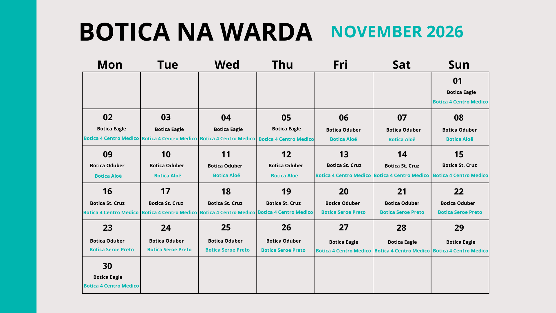 November 2026 Botica na wardaDate: 1 November 2026 08:00 till 30 November 2026 20:00Location: ARUBA DOWNLOAD Share onShare this page on LinkedInShare this page on XShare this page on FacebookShare this page on WhatsAppShare the page 'November 2026 ' via emailPrint this page